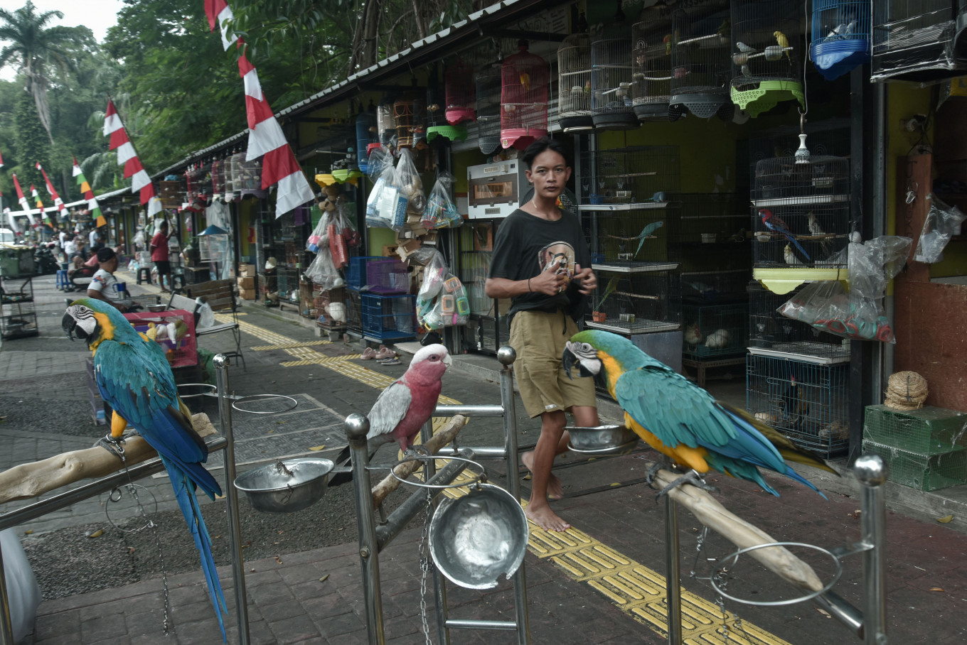 Market migration: A vendor passes by a number of birds for sale on July 2 at Barito Market in South Jakarta. The Jakarta administration will relocate the market to make way for the “unification“ of three parks, namely Ayodya Park, Langsat Park and Leuser Park, to support a larger ASEAN-themed park in the area. (Antara/Fakhri Hermansyah)