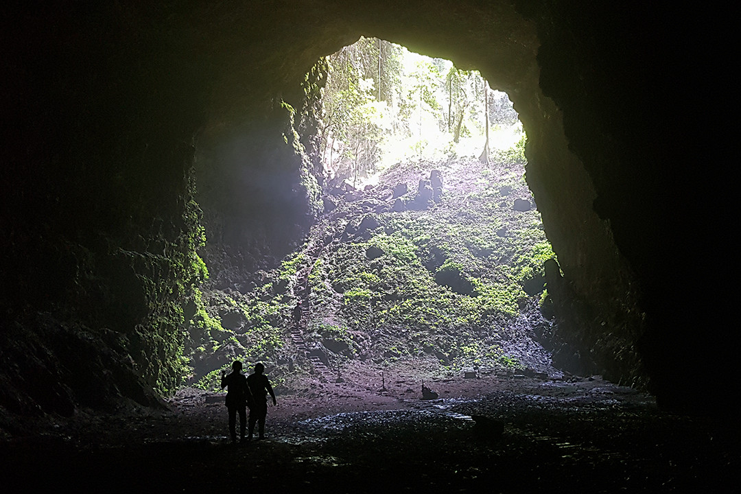 Into the light: We are naturally drawn to light and away from the dark, so will emerge into the light once again, like these two explorers walking toward the entrance from the pitch-black interior darkness of Jombang Cave in Gunung Kidul, Yogyakarta. (JP/R. Berto Wedhatama)