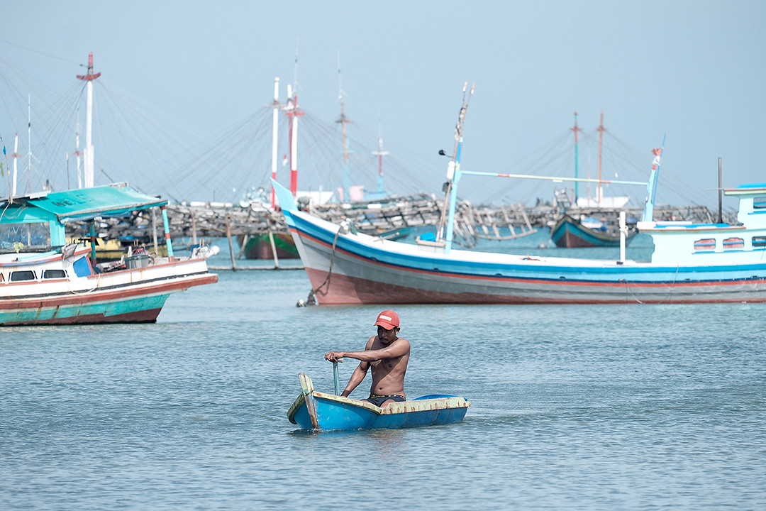 Way back home: After overcoming turbulent waves in the wake of larger ships, we, just like the fisherman here in his dinghy, head home to our lands. (Courtesy of Donny Fernando/-)
