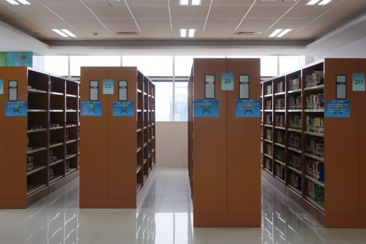 Bookshelves on the 22nd floor of the National Library of Indonesia. (JP/Ni Nyoman Wira)In general, people usually flock to the 21st and 22nd floors as books from a wide array of genres – from literature to non-fiction – can be found there. Sofas, tables and power plugs are provided.
