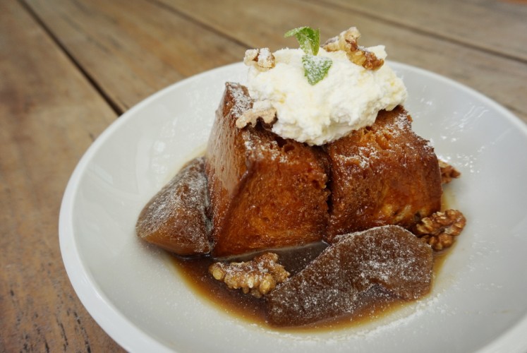 Beau's poached pear French toast, consisting of caramelized brioche and poached pear. (JP/Ni Nyoman Wira)Other options for breakfast places are Mister Sunday that offers all-day breakfast dishes with a relaxing atmosphere, Sophie Authentique, which is known for its canelé; kopikalyan, which specializes in coffee in minimalist interior and the newly established Ombe Kofie, which offers different types of coffee in a homey atmosphere.