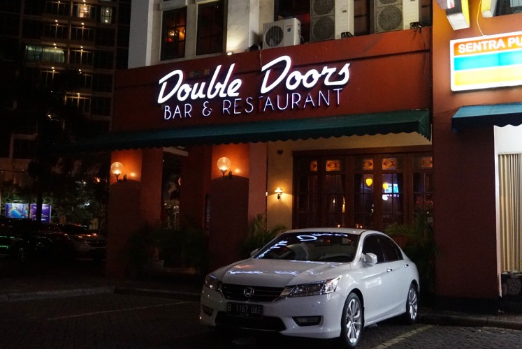 Double Doors opens from 12 p.m. to 2 a.m. on weekdays and until 3 a.m. on weekends. (JP/Ni Nyoman Wira)Designed in the style of an English pub, its first floor is a half-open bar, while the second floor features live music from Tuesday to Saturday and the third floor has a billiard table. Prices for Brain Wash start at Rp 150,000. Smoking is allowed inside the bar.