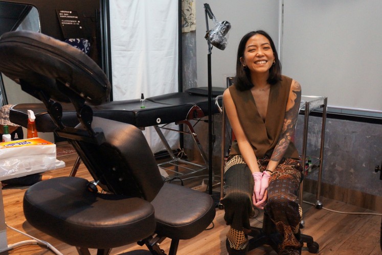 Tattoo artist Nadya “Nadcil” Natassya gets ready for a customer. (JP/Jessicha Valentina)Opened in February this year, Sidespace Tattoo Parlor comprises four seasoned tattoo artists: Nadya “Nadcil” Natassya, Danang “Unbound” Prihantoro, Agatha Pratiwi and Jati, also known as Antisimetri.