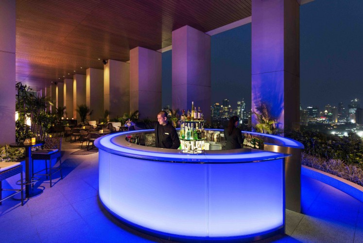 First established in 2012, Skye is one of the oldest rooftop bars in Jakarta. It is divided into two areas; an outdoor lounge for chilling out and an indoor restaurant for dinner. The restaurant itself is divided into two areas; Moon (smoking) and Sun (non-smoking). Both the lounge and restaurant are open at 4 p.m. with different closing times. The lounge is open until 1 a.m. from Sunday to Thursday and 2 a.m. on Friday and Saturday. The restaurant is available until 11 p.m. from Sunday to Thursday and 12 a.m. on Friday and Saturday.
