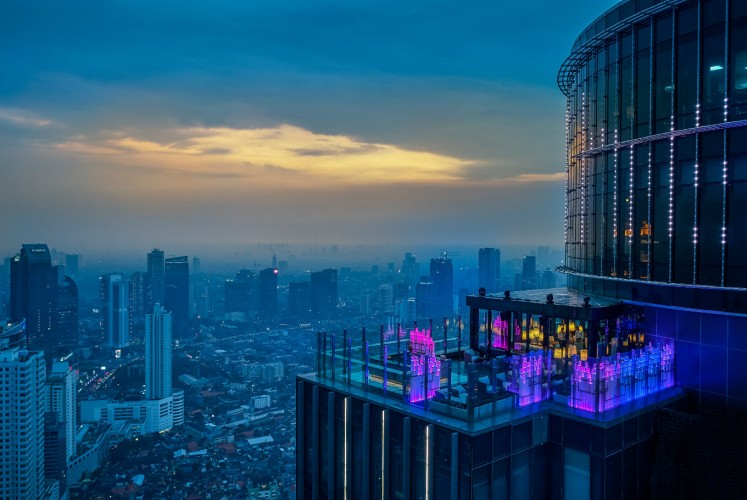 The night view of Skye. (Skye/File)It is highly recommended to make a reservation beforehand, especially if you plan to hang out in the lounge’s sofa area. Walk-in guests are still welcome, but on a first come first served basis. Moreover, they usually apply a cover charge of Rp 200,000 (US$13.97) per person on Sunday as well as public holidays and Rp 250,000 per person on Friday, Saturday and the day before a public holiday. The cover charge can be redeemed for drinks and snacks in the lounge.