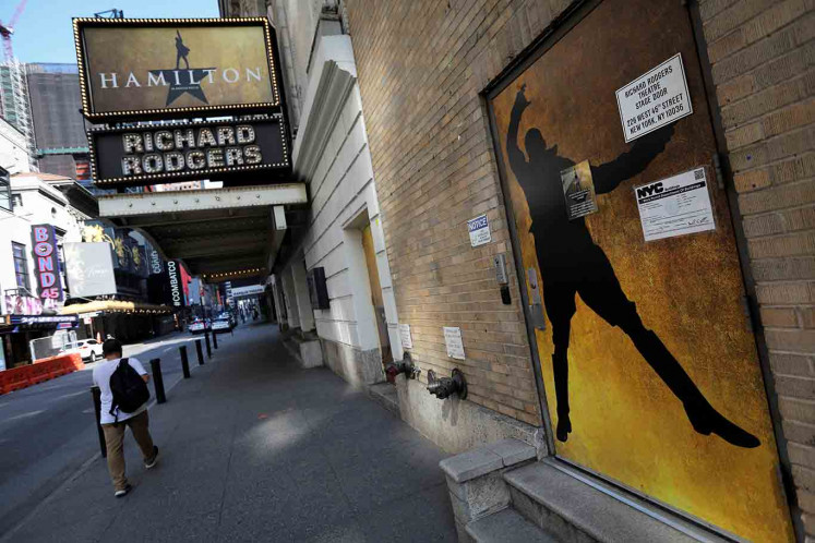 A man walks past the shuttered Richard Rodgers Theatre, home of the popular musical "Hamilton." (REUTERS/Mike Segar)With the partial reopening of cinemas and large arenas such as Madison Square Garden, NYC & Company's Heywood sees positive moves in the right direction.