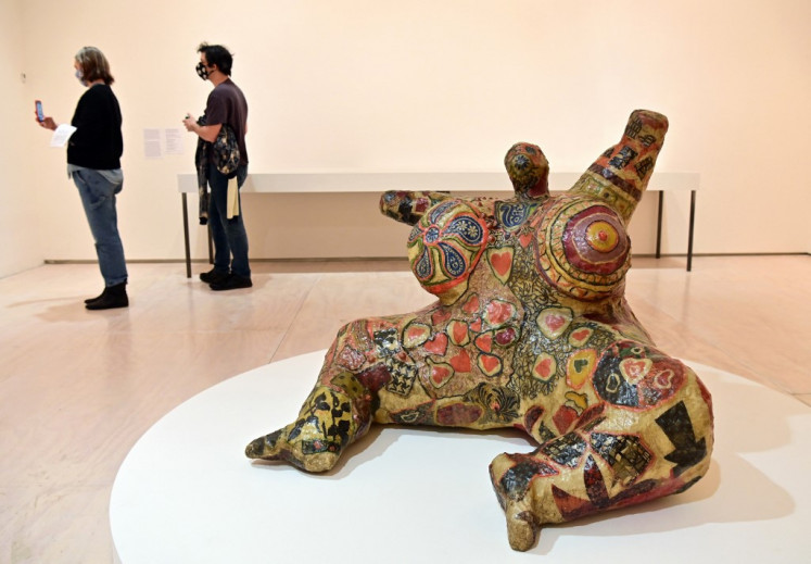 The sculpture "Nana assise" by French-US artist Niki de Saint Phalle is displayed during a press preview at MoMA PS1 on March 3, 2021 in New York City. (Agence France Presse/Angela Weiss)NYC & Company, which markets the Big Apple around the world and which cut its workforce by almost a half because of coronavirus, launched the "All in NYC" campaign to encourage New Yorkers to visit their own city.