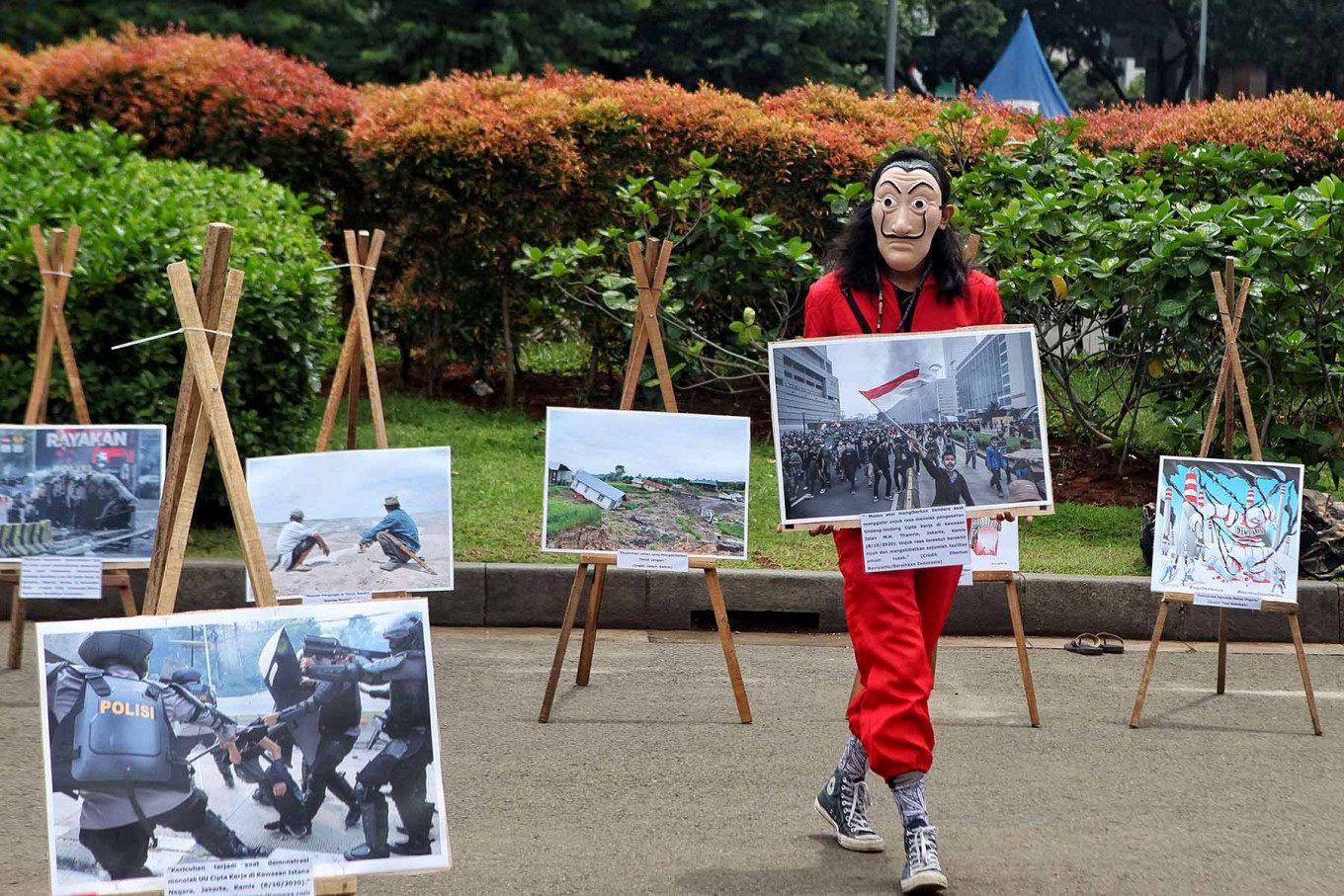 Students stage a theatrical performance in Jakarta on Dec. 15 in protest at rising violence against people for expressing their opinions throughout 2020, which has been considered a dark year for democracy. JP/Seto Wardhana