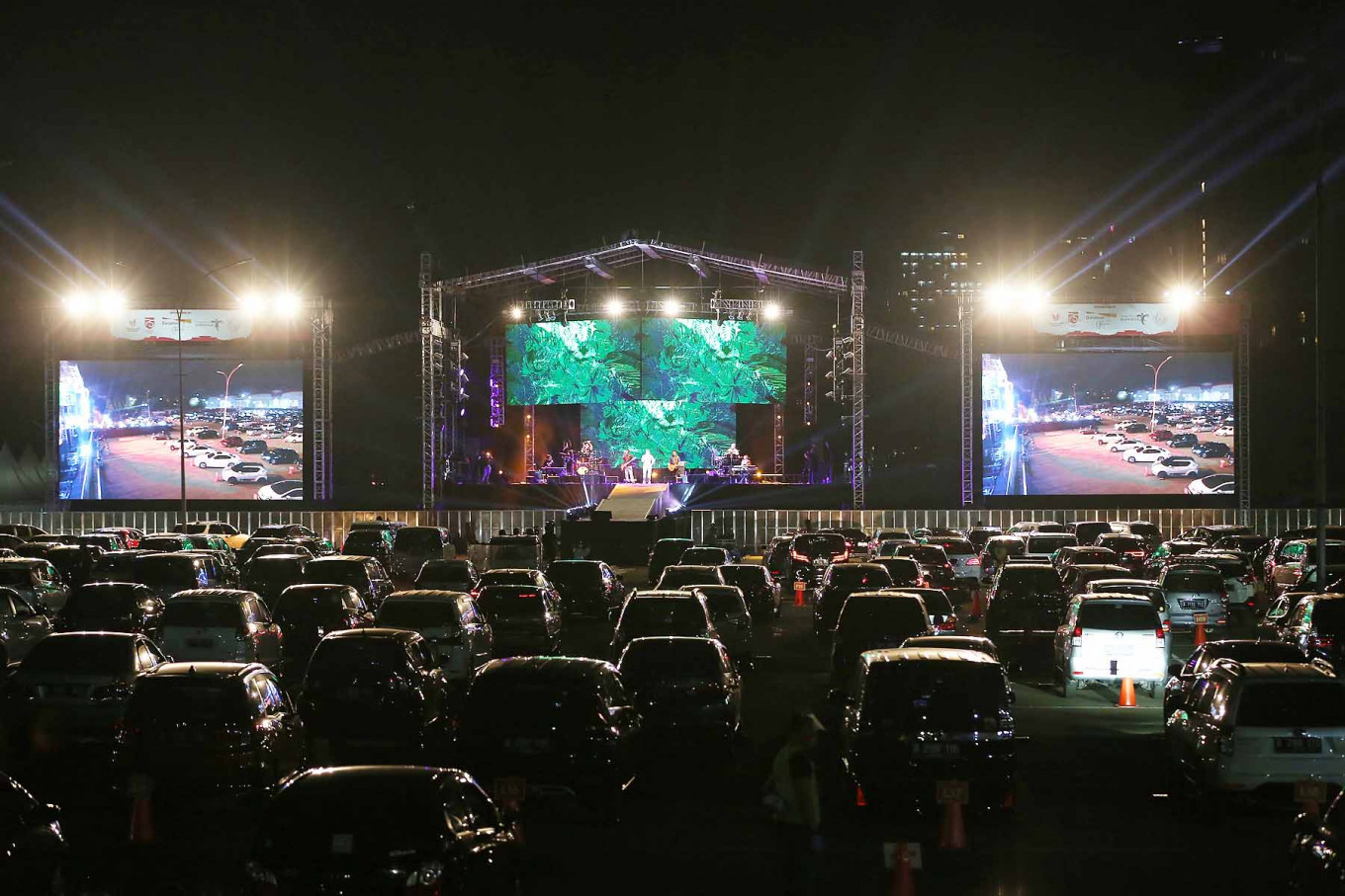 Audience members enjoy a drive-in concert by local pop band Kahitna during the New Live Experience series in the parking area of the Jakarta International Expo in Kemayoran, Central Jakarta, on Saturday August 29.2020. JP/Wienda Parwitasari