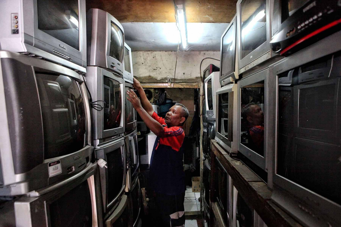 A technician repairs an analog television in Kebayoran Lama, South Jakarta, on Nov. 3, 2020. Article 60A paragraph 2 of the newly enacted Job Creation Law mandates the migration from analog to digital television for the next two years. JP/Seto Wardhana