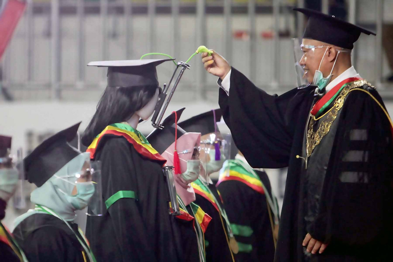 View all search resultsA Jakarta State University (UNJ) rector interacts virtually with a graduate during a graduation ceremony in Jakarta on Nov. 21. The ceremony celebrated 2,946 graduates and used technology to replace physical attendance amid the COVID-19 pandemic. JP/Seto Wardhana